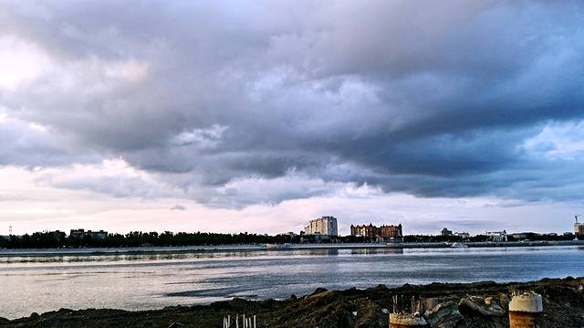 高楼林立的一面是黑河市区,对面建筑物较少的是俄罗斯申市。