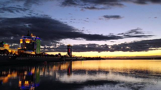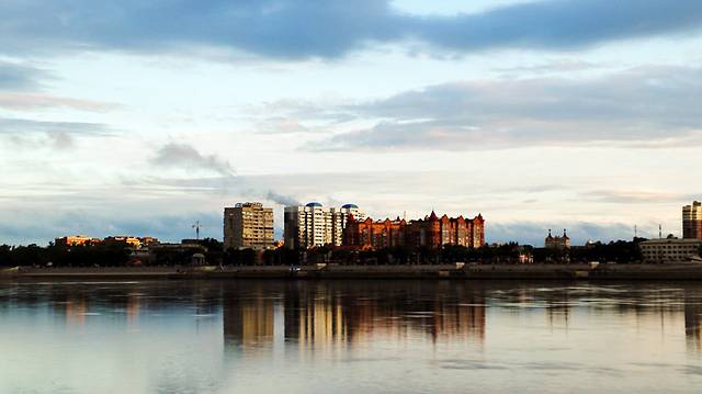 小住几日,悠闲安逸,早起看晨曦中苏醒的边陲的小城,上午转转大黑河岛上中俄商贸城购物,下午找家俄式餐馆品尝异国美食,晚饭后到江边吹着凉爽的风,拍几张落日中的中俄江景,真的是无比惬意,真的想多住几天。