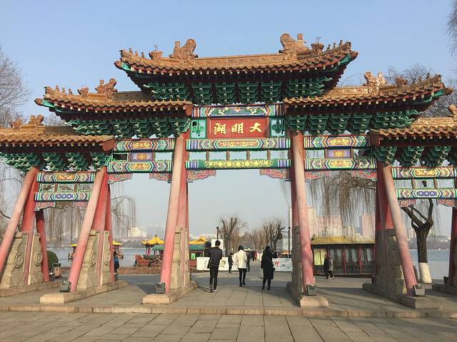 早在唐宋时期,大明湖就以其撼人心弦的美景而闻名四海。大明湖是一座城中湖,是由众泉汇流而成的天然湖泊。素有“一阁、三园、三楼、四祠、六岛、七桥、十亭”之说,悠久的历史中,成就了大量传奇故事,也是不少浪漫故事的发生地。 铁公祠在大明湖西北岸,是为纪念铁铉而建的祠堂,铁公祠西的湖山一览楼是观大明湖全景,远眺群山的好地方。 大明湖的北极庙是济南现存最大的道教庙宇,庙基很高,是大明湖北岸观景的佳处。 还有建于清朝宣统年间的遐园,拥有“济南第一庭园”之称;假山上的浩然亭可登高塑远,大明湖的风景尽收眼底。