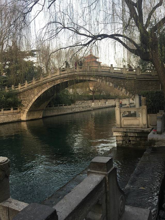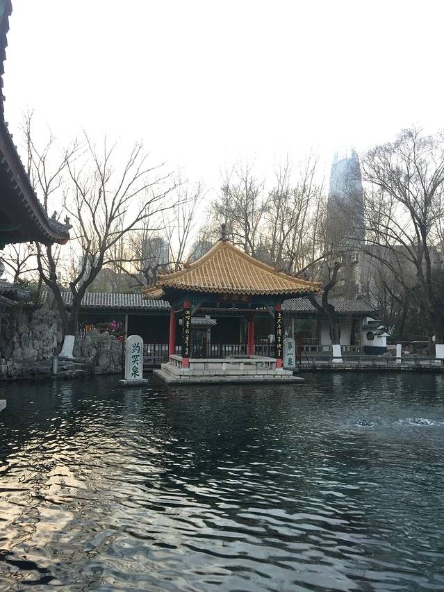 济南素以泉水多而著称,有“济南泉水甲天下”的赞誉。趵突泉是泉城的标志和三大名胜之首。趵突泉又名槛泉,为泺水之源,至今已有数千年的历史。 趵突泉是古泺水之源,古时称"泺",宋代曾巩为其定名为"趵突泉".亦有"槛泉"、"娥英水"、"温泉"、"瀑流水"、"三股水"等名。所谓"趵突",即跳跃奔突之意,反映了趵突泉三窟迸发,喷涌不息的特点。 趵突泉泉水一年四季恒定在摄氏18度左右。严冬时节,泉岸白雪覆盖,水面上一层薄薄的烟雾袅袅,配以周边的亭台楼阁,很是由仙气。 现在趵突泉公园占地10.5公顷。趵突泉泉水清澈透明、味道甘美,是沏茶的上品好水。