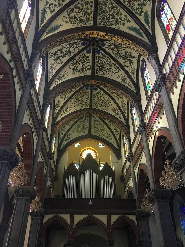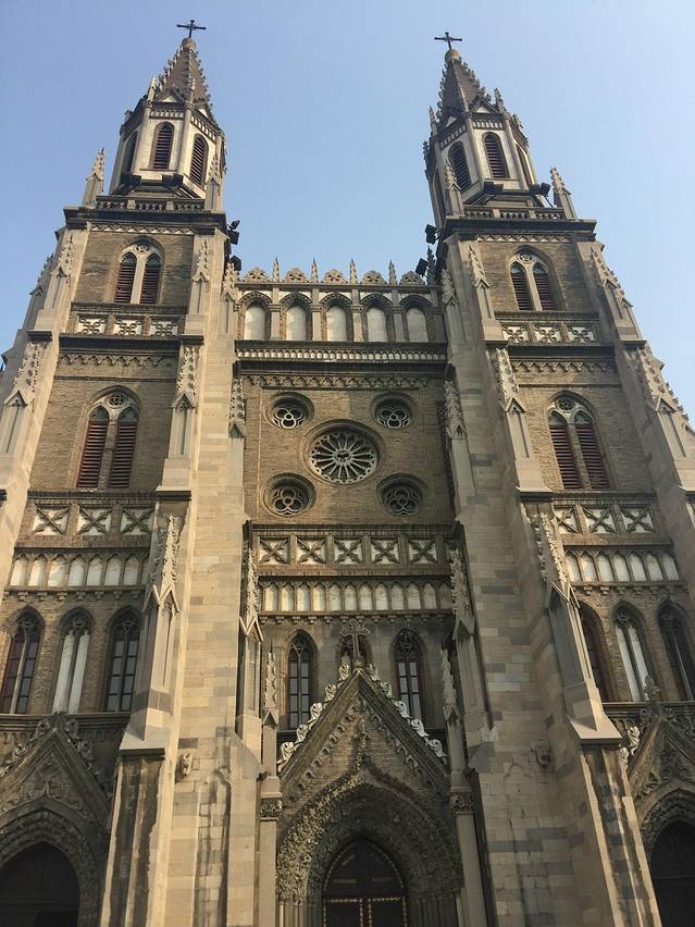 教堂位于济南市区东部,历城区洪楼广场北侧,东邻山东大学老校,以洪家楼村而得名,是济南市也是华北地区规模最大的天主教堂,在中国近代宗教建筑中占有重要地位。 教堂为双塔哥特式建筑,始建于1901年,建成于1905年(洪家楼天主教堂也有说法为1904年),是中国三大著名天主教堂之一。现存教堂是1905年扩建落成,整个建筑气势宏伟,威严高耸,蔚为壮观,基本属于欧洲12至16世纪初风格,该教堂体量高大,气势宏伟,平面为拉丁十字形。教堂坐东面西,前窄后宽,多角多棱,多门多窗,可容纳千人作弥撒。正面两侧为尖顶分立式钟楼(塔),石砌方形,塔顶高48米,相当于有12层楼高。为全国重点文物保护单位。