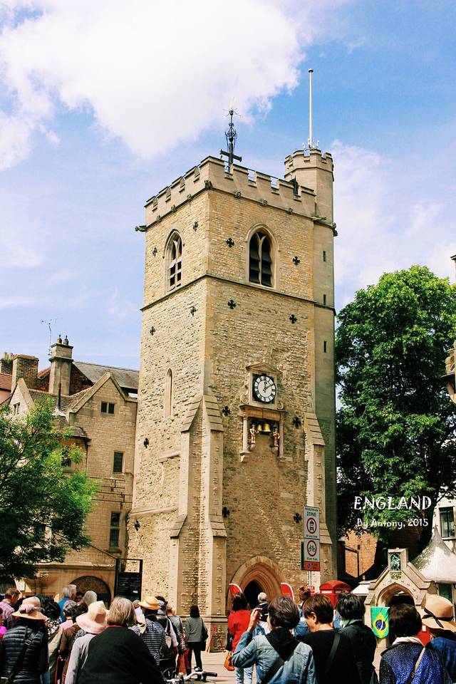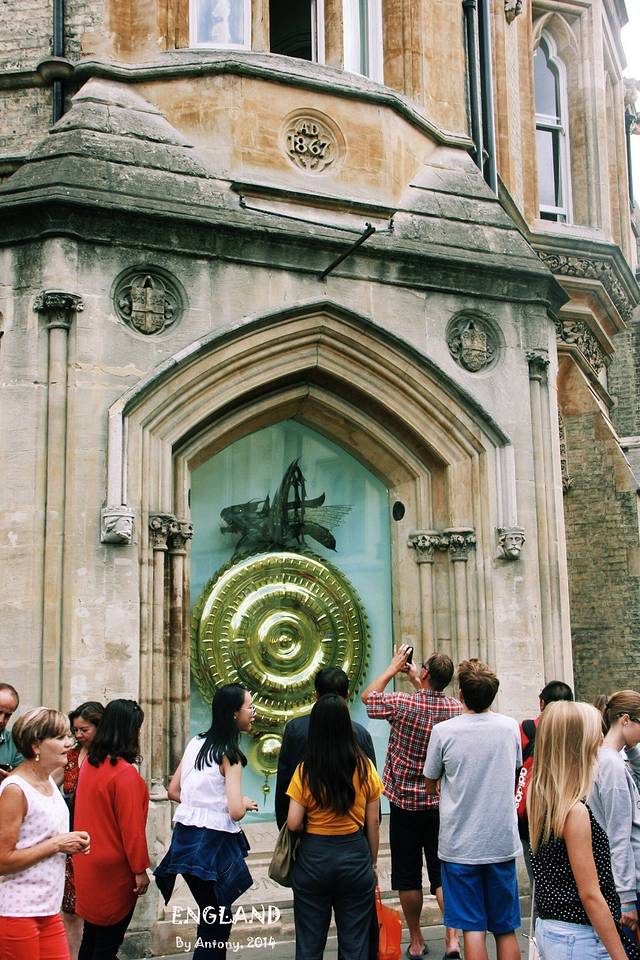 “圣体钟”由约翰泰勒构思设计和出资百万英镑建造,历经5年时间,2008年由物理学家史蒂芬•霍金揭幕。这只巨大的金色的蚱蜢被称为“Chronophage”时间吞噬者。其躯壳表面是斑驳的金粉和血浆,意在提醒人们生命短暂。是剑桥新的必看景点之一。