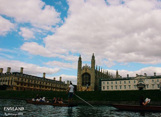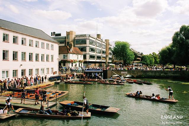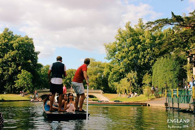 游船码头上有很多剑桥的学生在拉客,让你体验剑河撑篙。你随便找一个人,他就带你到河边的游船售票处买票,单人17.5镑,六个人一条船,45分钟的游览。