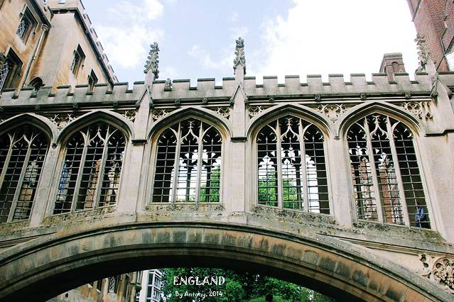 圣约翰学院由亨利七世的母亲于1511年创办,也是剑桥最古老、最大的学院之一,建筑群十分壮观,最著名的“叹息桥”(Bridge of Sighs)也属于圣约翰学院。这座桥是英国女王最爱的剑桥一景,建于1831年,跨越在剑河上,连接了圣约翰学院的旧庭与新庭,传说它是因没通过考试的学生经过这里常望景而叹息而得名,但另一种说法是因为它类似于意大利威尼斯的一座名为叹息桥的廊桥而得名。
