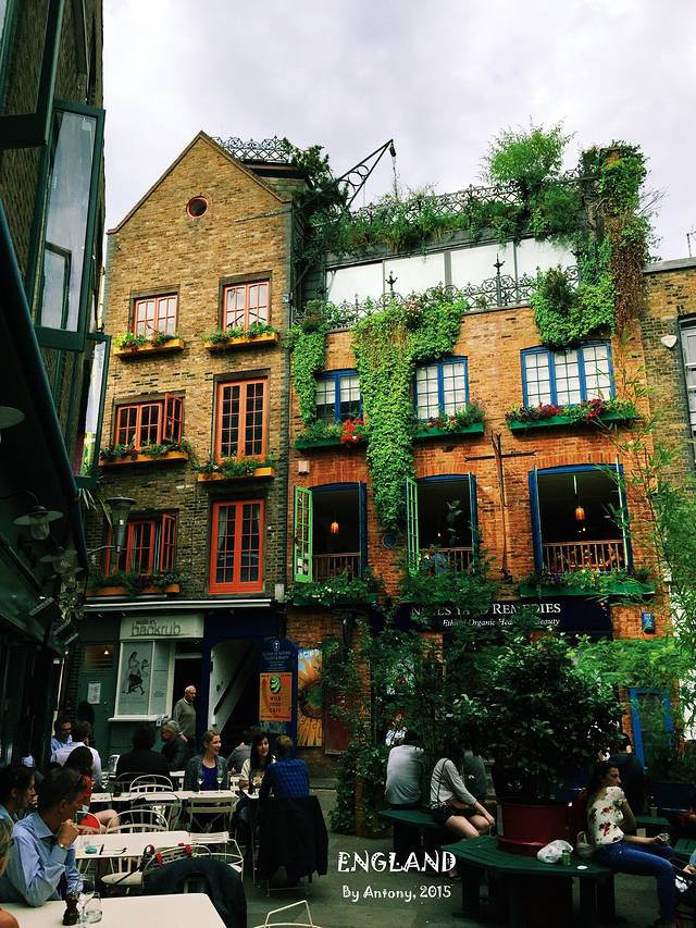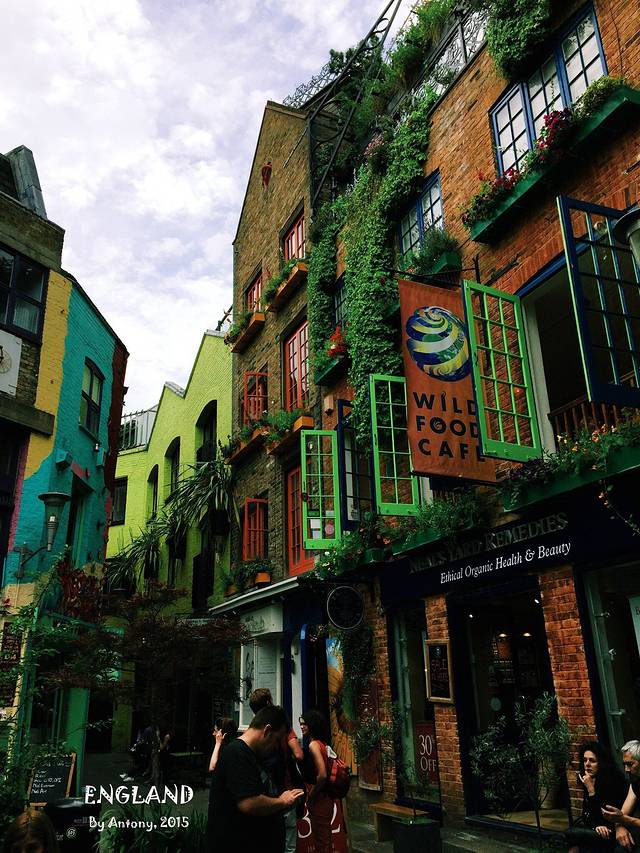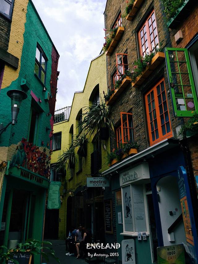一路看地图一路找Neal’s Yard,感觉应该快到了,却一直没看到有彩色小巷。就在我路过一个巷口时,一回头,终于看到了那亮眼的彩色,果然是“蓦然回首,那人却在,灯火阑珊处”!