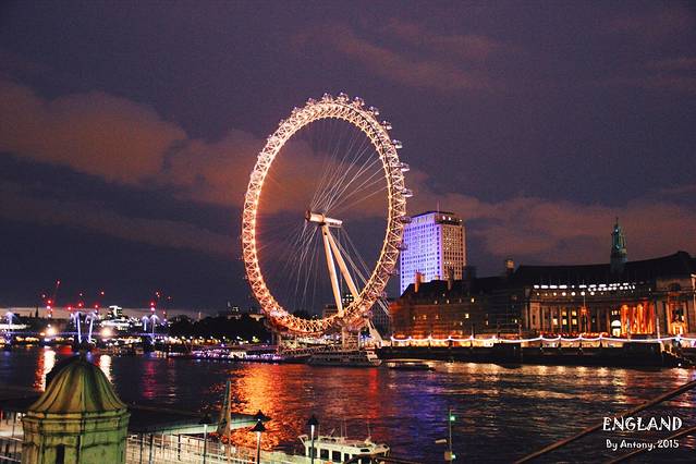 伦敦眼坐落在泰晤士河畔,这个巨型摩天轮高达135米,是伦敦最吸引人的观光点之一,在上面可以鸟瞰伦敦全貌。这个充满现代感的庞然大物和周围历史悠久的建筑群相映成趣。