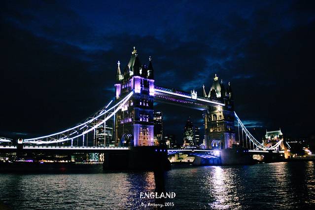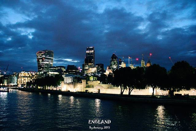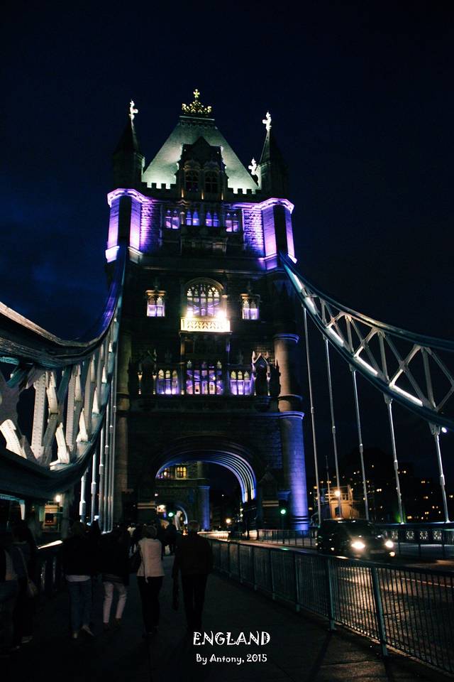 回到酒店吃完晚饭,在房间一直休息到九点半,然后收拾一下东西出门,前往伦敦塔桥看夜景。乘坐地铁到Tower Hill站,出了地铁,步行一会就到伦敦塔桥。塔桥的夜景很美!