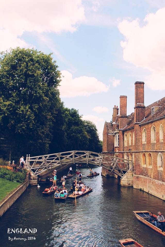 乘船游览剑河早在1702年就已兴起,这项传统活动在当地叫做“撑篙”(Punting),即漂流游览剑桥大学沿河景观,欣赏举世闻名的剑桥各学院后园风情,途中经过数学桥、皇后学院、国王桥、三一学院、叹息桥、格蕾桥等多个景点,美景如织,风光无限。