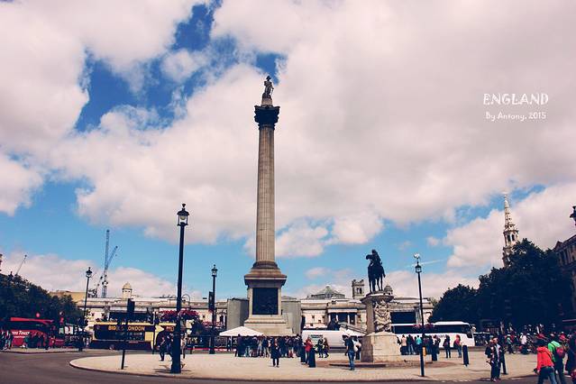 特拉法加广场位于著名的查理十字街(Charing Cross),是伦敦的中心广场,经常举行各种大型活动。广场的中心耸立着高达50多米的尼尔森纪念碑,底座由四尊巨大的石狮护卫。