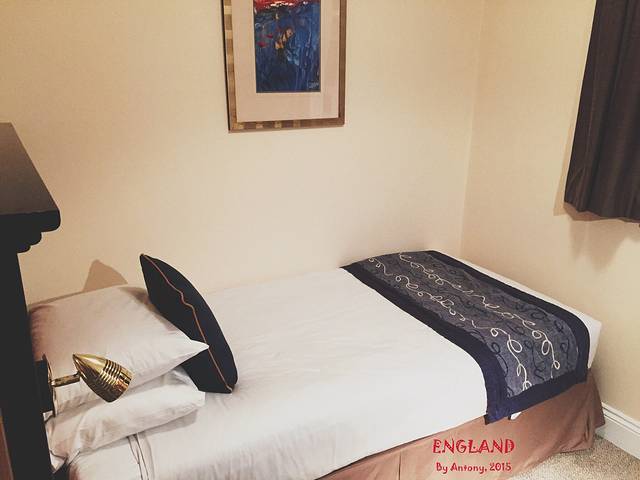 我订的是单人间,每晚92镑,包含早餐。其实这家酒店的单人间在旅游旺季是120多镑一晚,我在Booking上预订时恰好在打折,所以才能以这个价位预订到。但如果不是旅游旺季,一个单人间大概也就90镑左右了。酒店的单人间也确实是名副其实的“单人间”,大概只有7平米。想拍张照都因为空间太小,取景很有难度。这样的房间还要92镑,折合人民币近900块钱,伦敦的消费水平之高实在让人咂舌。