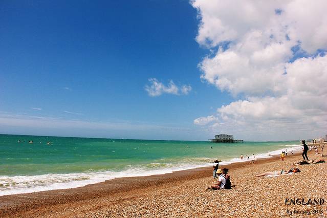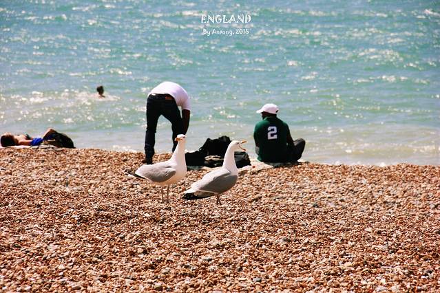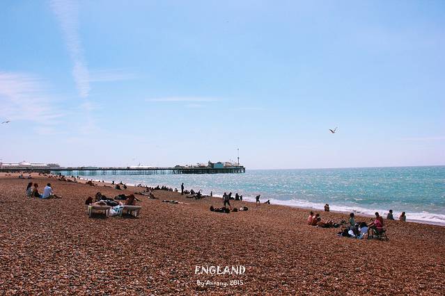 布莱顿的海滩很特别,没有沙滩,全是大大小小的鹅卵石,走在上面如做足底按摩。