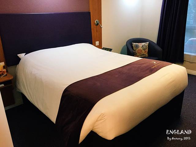 Premier Inn的房间是很大很舒适的。只拍了一张照片,不好意思,临走的那天才记起来给房间拍照,但房间里弄得比较乱,所以只拍了一张床的。