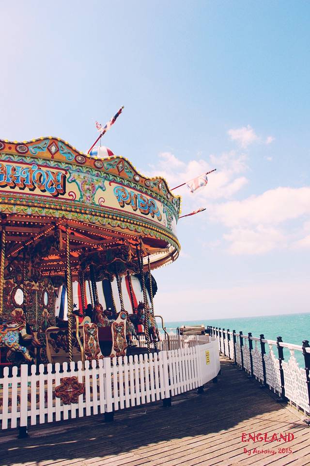 在布莱顿海边,最显眼的就是布莱顿码头了。如今码头被改建成了一个游乐园,有碰碰车、疯狂老鼠、小型过山车、翻滚椅、旋转木马等。