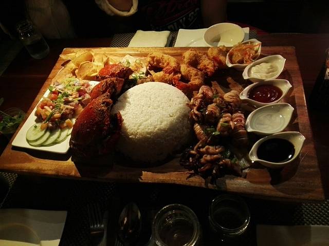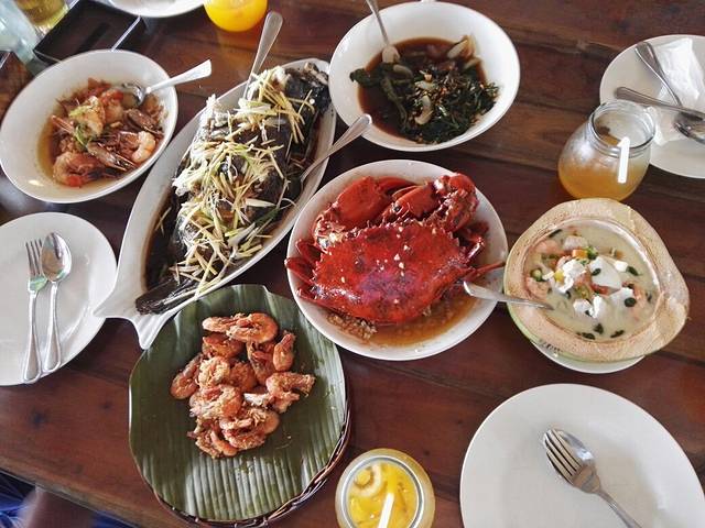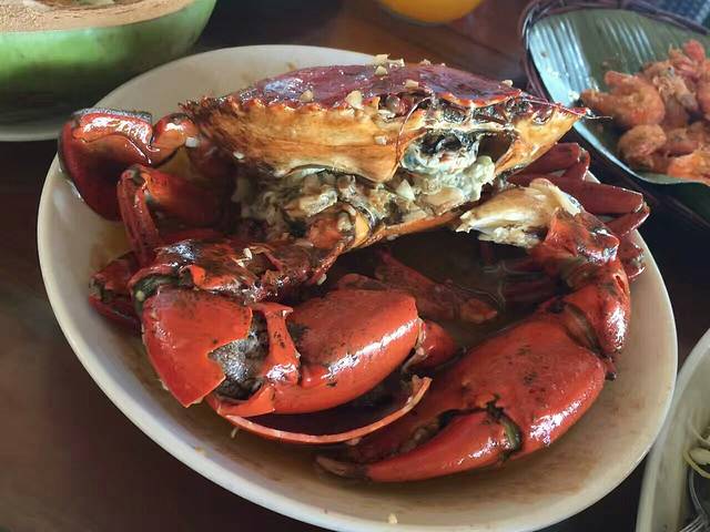 1)海鲜做的很好吃,价格也便宜。现选现杀,石斑1250P/公斤(约90RMB/斤),螃蟹1050P/公斤(约75RMB/斤)。石斑选清蒸即可,螃蟹我喜欢蒜蓉黄油的。