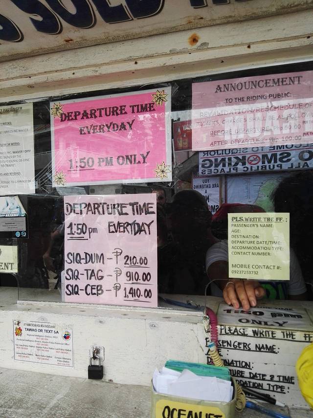 从杜马盖地码头出发,注意,不是Sibulan码头,而是位于海滨步道旁边的那个码头。有好几个船运公司在那边售票,如果某个售票窗口没有你想要的船只,就到另外的窗口看一看,回来也是一样。