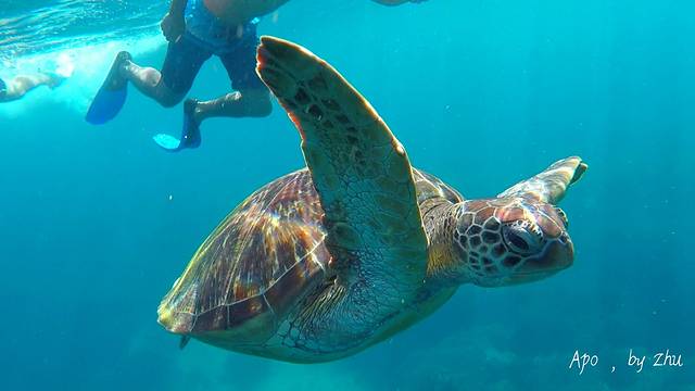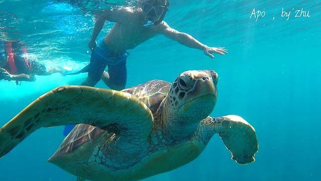 所以,如果我来推荐行程的话,建议先去APO岛看海龟,因为能潜好几个小时,这段时间你可以很好的适应海水的浮力,这样再看鲸鲨的时候,脱救生衣没有那么大的心理压力了。毕竟鲸鲨观看时间就半个小时,没有那么多时间让你慢慢适应。