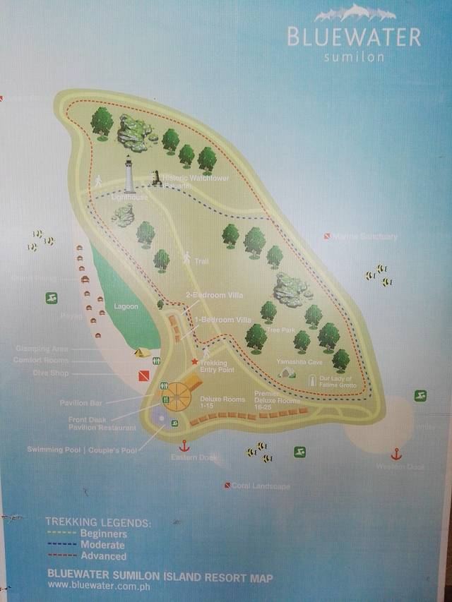 一日游的套餐包含的内容我觉得已经够了,包括:免费毛巾、无边泳池、免费饮料、自助餐、免费浮潜用具。你可以选择浮潜或者徒步,参考地图上都有标注,其中比较推荐White Beach浮潜,就是船只等岛的那块地方,那里海水比较漂亮,吃完自助餐可以坐免费观光车过去。