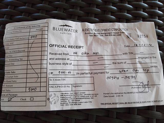鲸鲨观赏点报名,1200P/人,包含储物柜和脚蹼,面镜和呼吸管一般都自带,真要用那里的也行。下图是鲸鲨观赏点的大门口,在里面报名、更衣、淋浴,然后工作人员会领你出来到右边的海滩集合,在那接受简单的注意事项培训,就可以穿救生衣下海了。