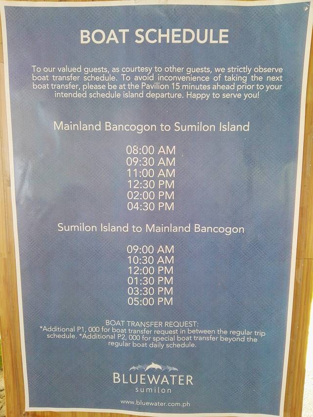 具体的出发和返回时刻表见下图,苏米龙号称一岛一酒店,酒店价格被吵得很高,帐篷都要800RMB一晚,打死我也是不去住的,我宁愿用来看5次鲸鲨或者参加5次APO岛海龟,哈哈。