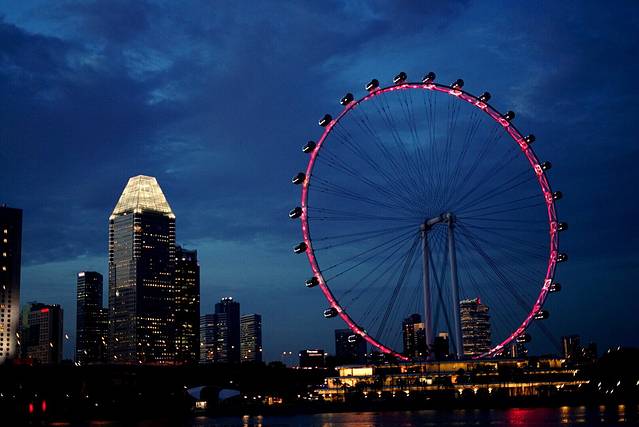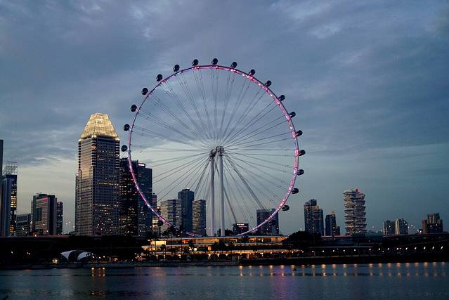 吃饱喝足,上摩天轮了。我们那天没有很多人,所以排队也没有排太久。一个车厢大概上了12人的样子吧,大多都是中国人。从摩天轮往下看,应该是可以看到整个新加坡吧?