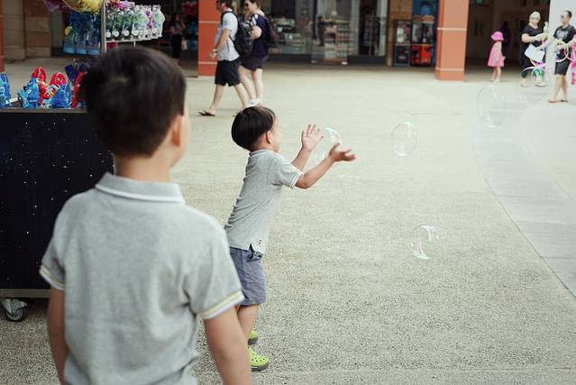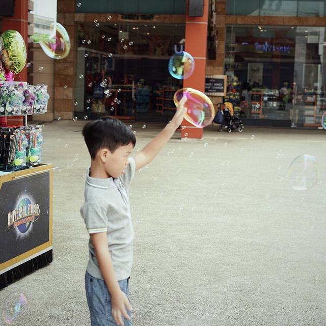 刚到环球影城,孩子们被这些泡泡给吸引了,弟弟开始一个劲闹着要买泡泡机了。