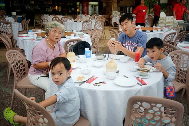 到了摩天轮,首先解决肚子问题,再去满足视觉。摩天轮下面就是这个路边摊,这里的小吃品种特别多。弟弟和奶奶都是点了海南鸡饭,我要了一份肉骨茶,这里的出品,一般般吧。如果非让我推荐一个的话,我觉得燕窝水特别好喝,价格也很便宜。