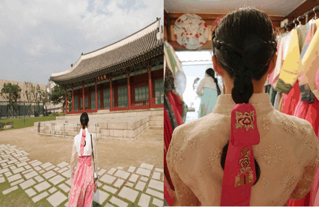 穿着韩服一直都在拍照、拍照又拍照,肚子变得好饿啊。