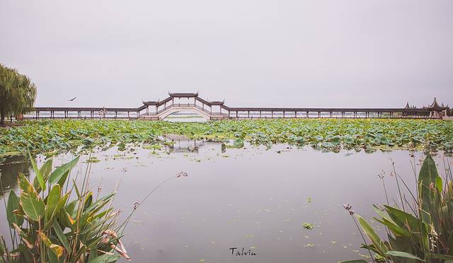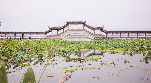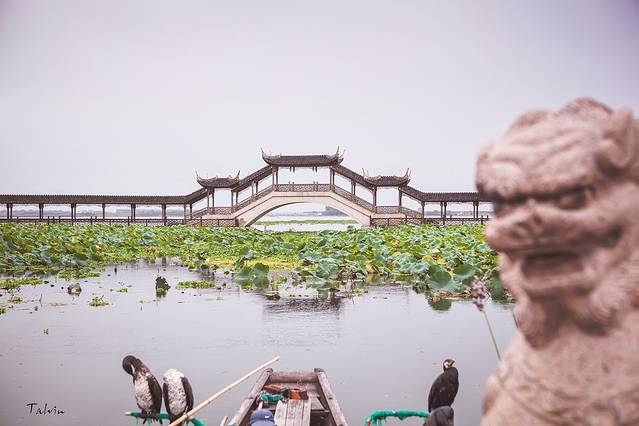 锦溪古镇的地标建筑——古莲长堤,我们去的时候长桥正在维修,所以行人不能通行,反倒照片拍出来比较干净,可惜天气太阴沉了。