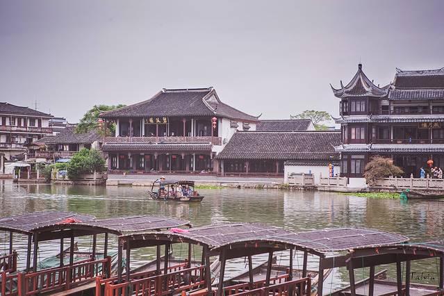 逛完锦溪古镇决定前往离这不远的周庄去,一来周庄晚上更为热闹,锦溪晚上真的没有什么人;二来周庄晚上可以不收取门票。(平时一般工作人员在7点左右下班,节假日则会晚点在8点左右,尤其正门最晚)