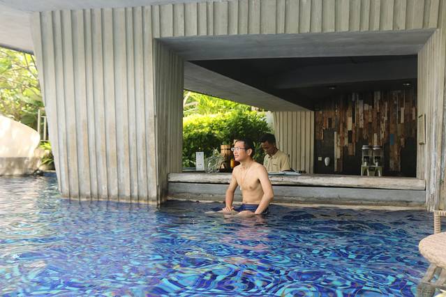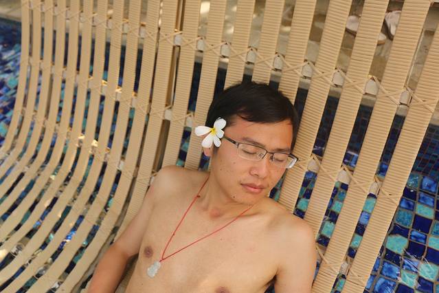 第二天要check out,一早起来我俩要去享受rimba的泳池啦~~早上都没什么人,一个人玩的好开心