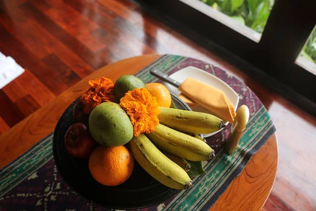 考虑到叶子在市区,在餐厅吃饭没什么好看的,所以就在villa里解决了。每天早上按照之前book好的时间会有人送上门。既然是私人泳池,总得有点玩耍的样子吧~