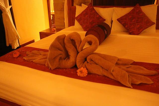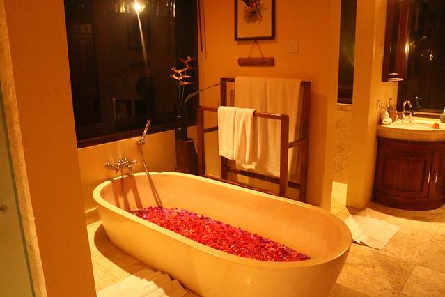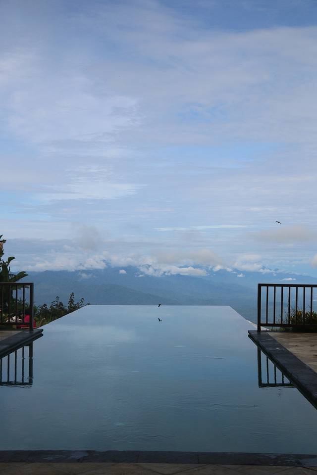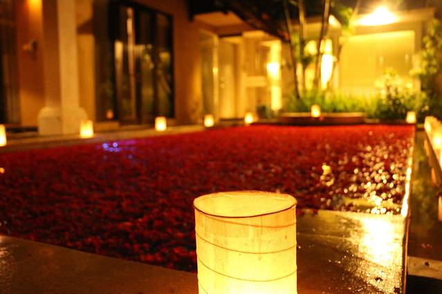 所以我们最终挑了3个酒店:rimba很现代很大的度假村,可以共享ayana的资源,但没什么印尼特色;mmp出名的泳池是天空之镜,此行大爱,虽然很远很远,但是相信我绝对让你觉得不虚此行。酒店在海拔2800m的深山上,villa的私密性也非常高,还有露天淋浴,度蜜月感觉不要太好,我和老公都说下次来只住mmp。叶子别墅在库塔闹市区,但是里面却是很安静,可以带私人泳池,最大特色是蜜月dinner,张先生从来没送过花,这次似乎把一辈子都送了。