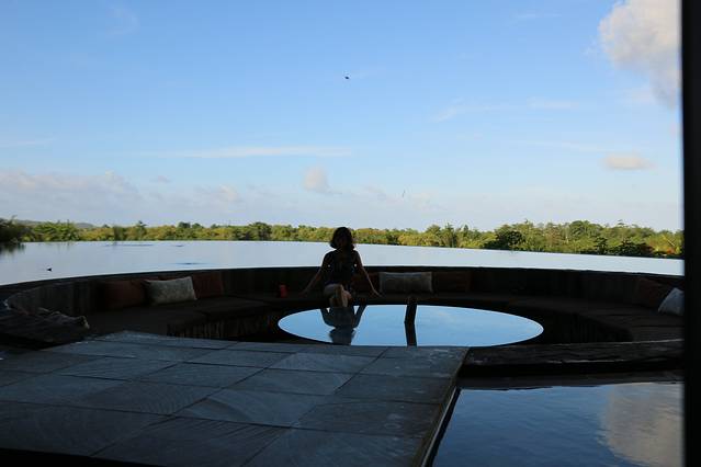 到了酒店后,好热情的服务生给我们献上鸡蛋花和welcome drink,扑面而来的巴厘岛风情着实让我激动了一下,但是当时还没换衣服,所以心情并不是很好,觉得自己又热又丑。我们提前有跟酒店沟通是honeymoon,所以酒店当时送了个gift,就是个姜茶。。金巴兰的大堂无边池子真是美爆。但是那天天气不太好,怎么都拍不好。后来第二天又去拍拍拍……,只能说我也是很拼,哈哈。