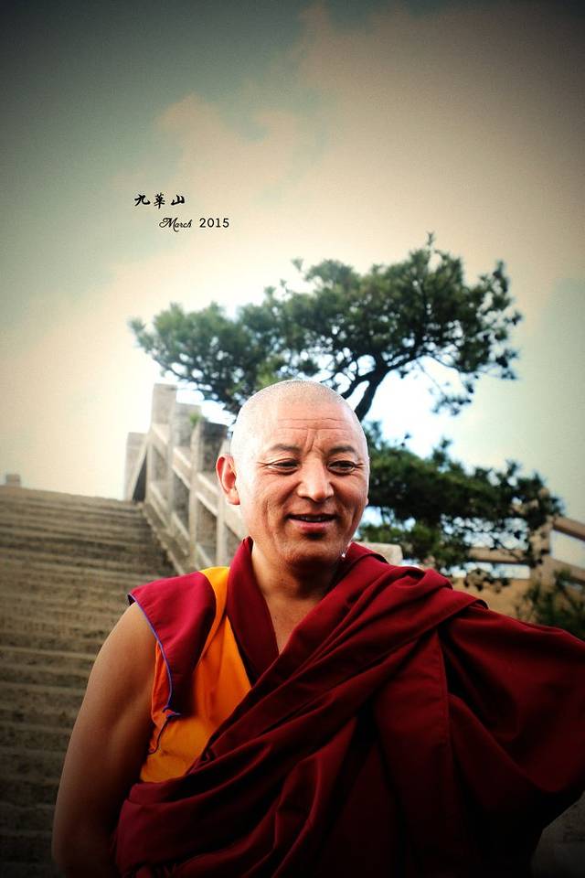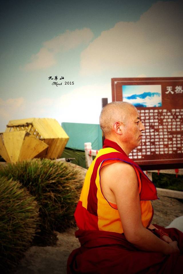 下午三点四十分,历时三小时二十分,花台正顶!路遇两位喇嘛,这位年纪大些的很是随和。他们是从另一边乘坐花台索道上来的。。。
