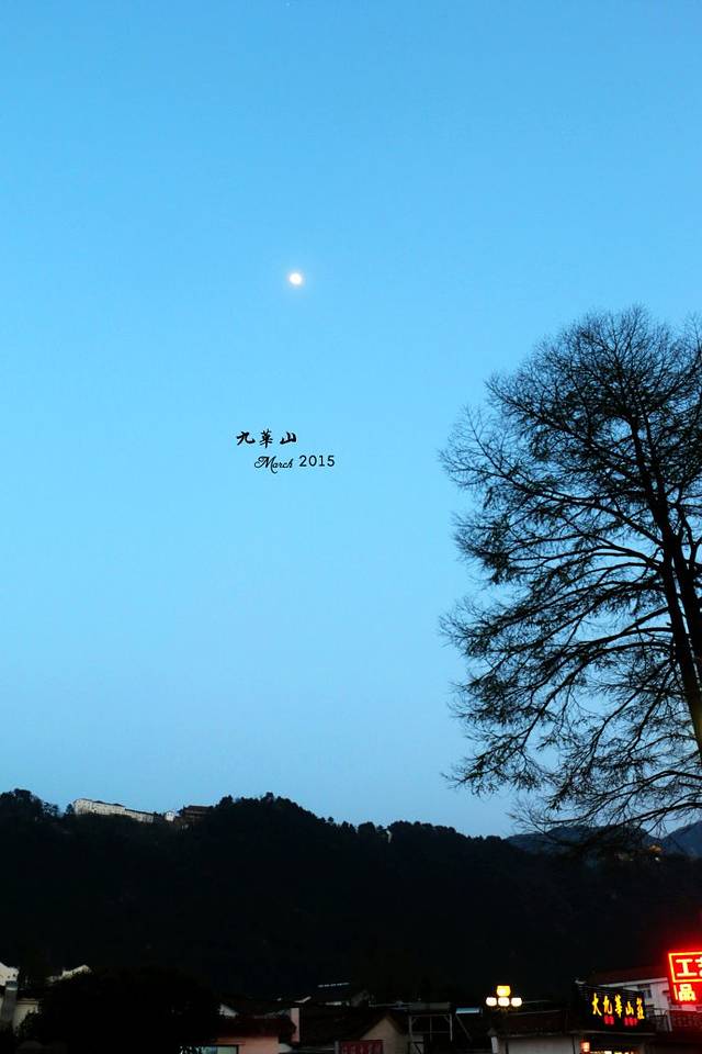 六点半,回房换衣出门觅食,去前台姑娘推荐的餐馆,月儿初上。这姑娘对于洒家今天天台到东台走三个半小时微微一笑,说很少有人这样走的。心想洒家前两天已经走遍天柱山西关东关,而且即使今晚有洞房花烛,劳资也一样没问题!