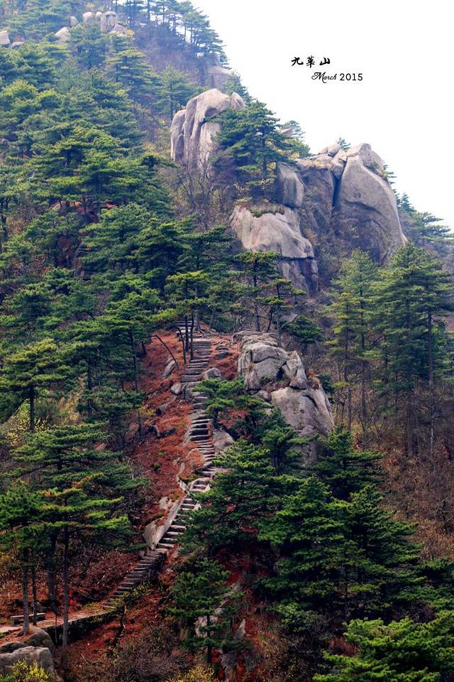 自己以前曾在游记里说过,遇到姑娘洒家不一定上,遇到山嘛劳资一定要上!乘车坐索道除非不得已绝不为之。登山,不是体健腿强,就是个意志!我觉得我可以,那就一定可以!当然你也可以理解为我在找虐!因为时间关系,这是九华山这趟稍稍遗憾的原因。
