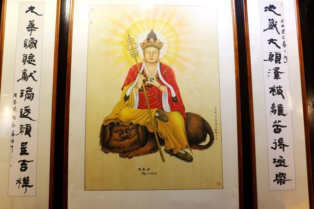 祗园寺前行百米,路旁左右分别是财神殿和化城寺。后者前面提过,一会再表。闵公殿,在闵公墓边,为纪念供奉施地给金地藏的闵让和而建,是九华山的财神殿。