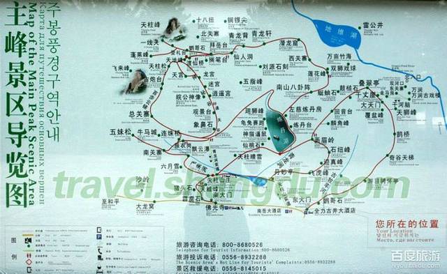 十点,放下背包,入住问路。前台的姑娘听说我要走“祗园寺——凤凰松——古拜经台——天台正顶——花台(原路返回)——小花台——文殊洞——观音洞--祗园寺”路线时,大睁着杏眼相女婿一样看了洒家八秒时间一定不止。“先生太远了不行的,时间来不及!”第一句话劳资心说妞你不知道洒家已经爬过两天天柱山了!第二句话却让我当时立刻泄了气!