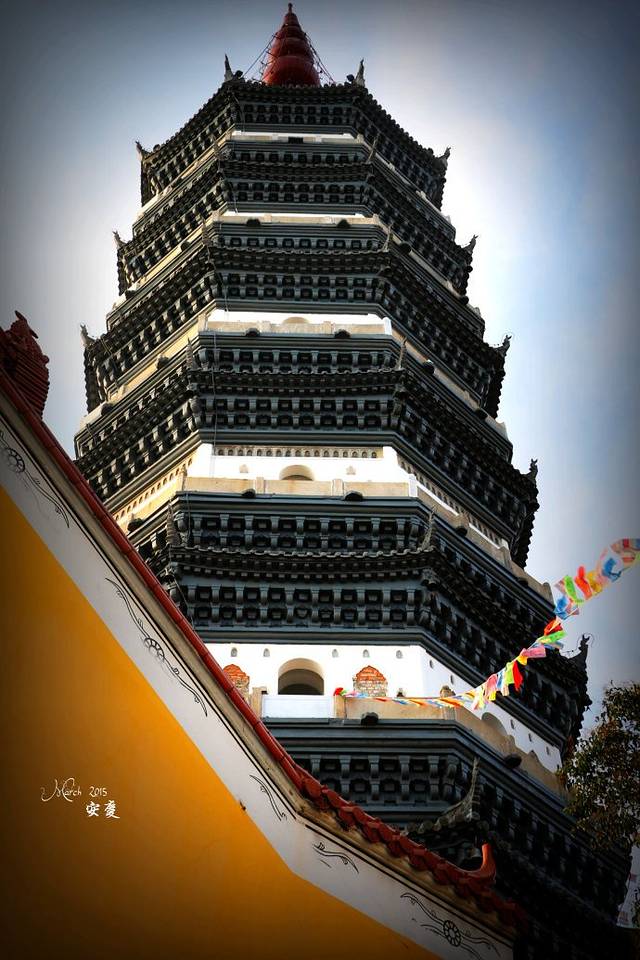 吃到撑的不行,虽然因为天柱山两天腿疼疲惫,还是决定走走逛逛再回吧。来的路上看到窗外有座塔,于是信步走去。。。