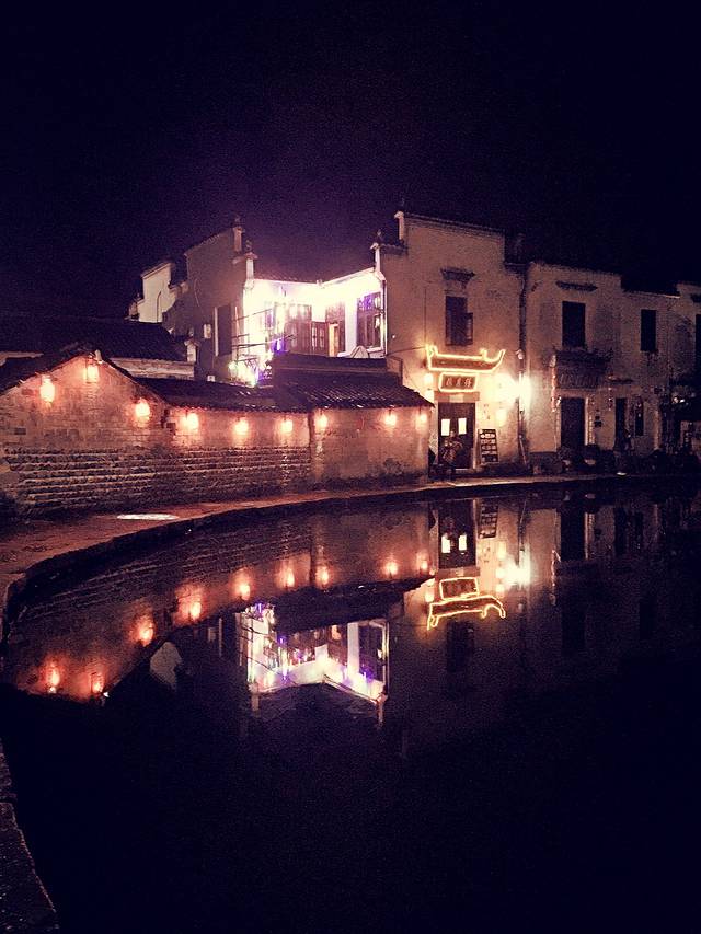 月沼,宏村的牛胃,吃完晚饭荡一荡,淡季夜晚很冷清,早点回去睡觉,p图,发圈,哈哈哈哈