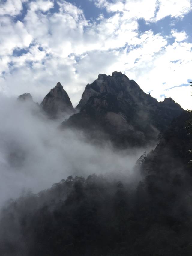 上山的时候,下雨了,本来有点失望了,但是走着走着,云雾拨开了,风景出来了,雨也停了,初见黄山也是极害羞的,犹抱琵琶半遮面,若隐若现,引起探看真面目的欲望,突然想到现在的网络热词“撩人”