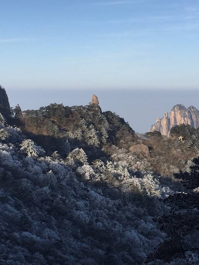 远处的飞来石,说起这个,黄山的怪石全靠自己想象,客官们自己发挥哈,本行基本是看日出看雪看松,不看石