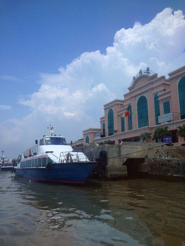 山咀路口到山咀码头也就十多分钟的路途,我们就走了过去。原本以为渡轮会一个小时一趟,错过了就要等长时间,去到那才发现,有船就可以上,满载就开轮,节省不少时间。
