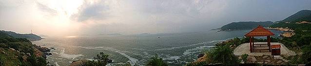 一走上去几乎被震撼住了,一个三面环海的高台,周围海岸线清晰可见,远方很深邃。