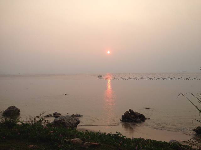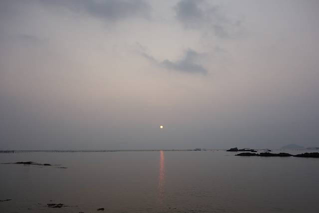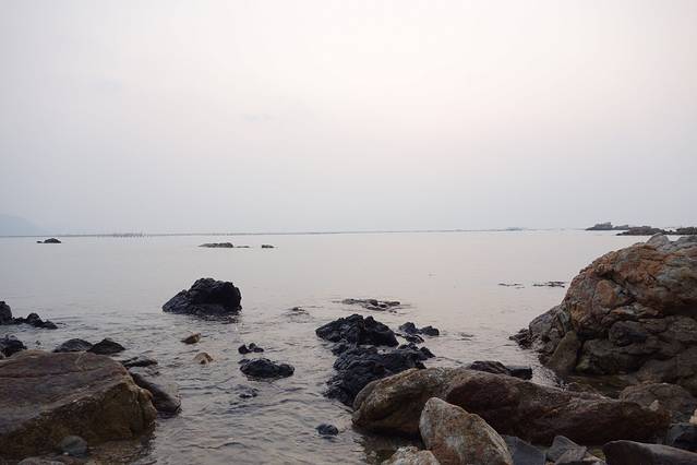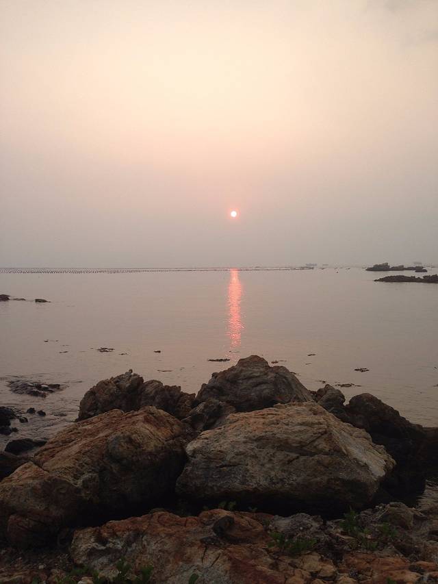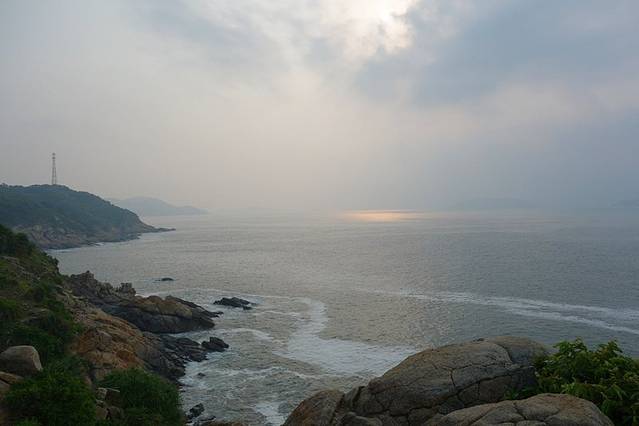 在观日出的凉亭再前行七八公里可以到白头礁,也几乎是岛上休闲徒步通道---潮人径的终点,这里离景区较远,一般没什么游客到这里来。没想到却在这里迎来了迟到的红日。