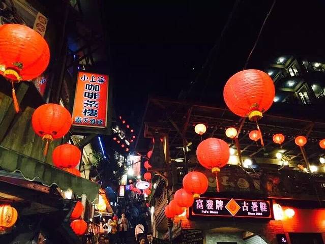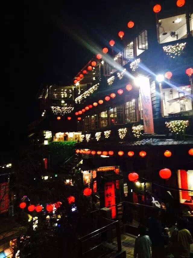 九份有很多猫 但是可能下雨 我一直也没有看到 晚上夜景挺漂亮的 不过想要拍九份整个夜景 得去一个店里拍 但是那个店不让免费进入 得买个饮料 才行 人太多了 又下雨 滴一路的水 但是也是别有一番风味啊