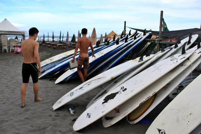 除了親近海灘之外,到處都有出租浪板的店家。