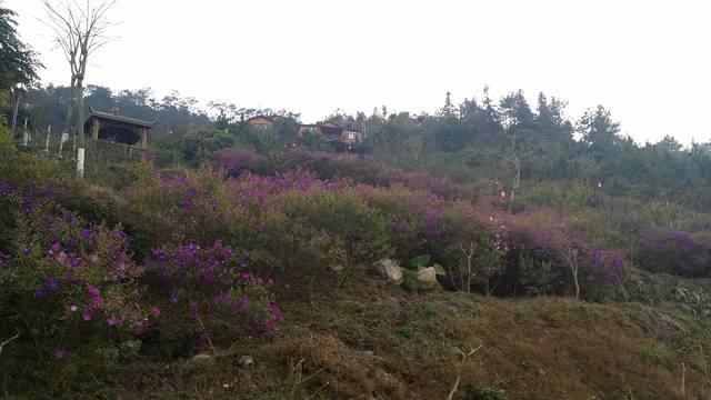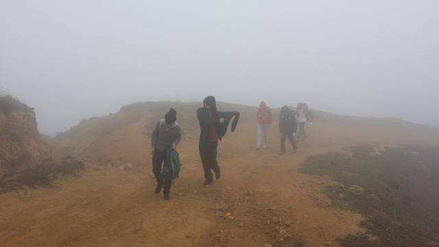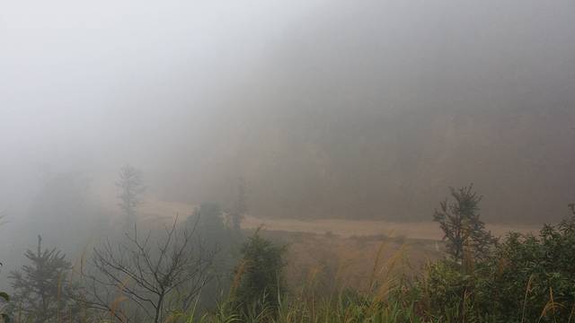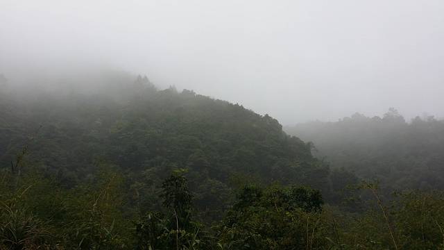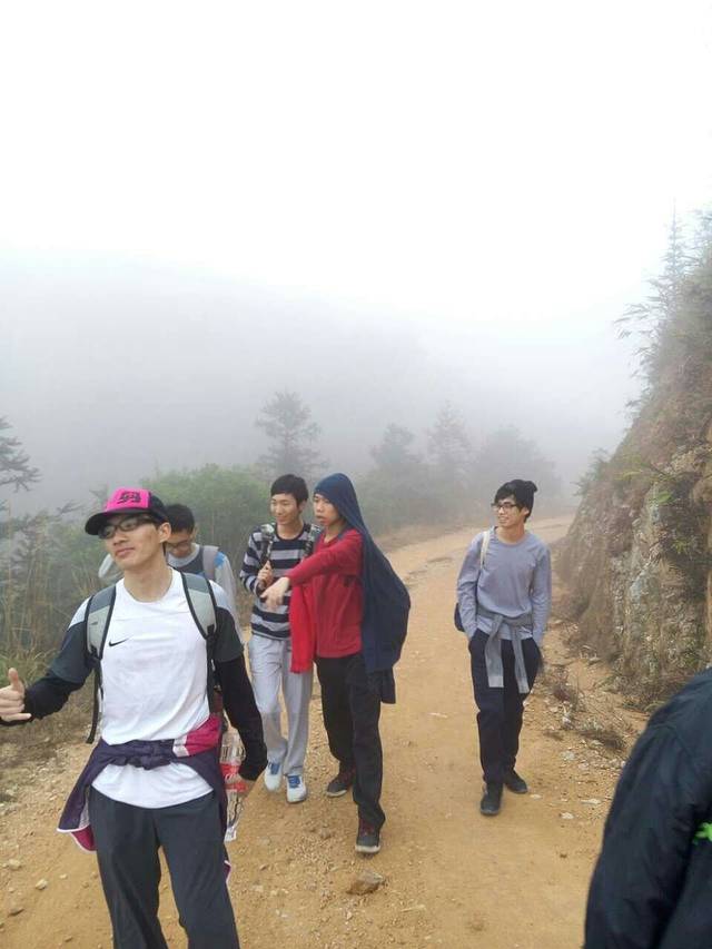 相较于上次来时的阳光明媚,这次真的失色不少。原本百里可见的天露主峰,放眼望去只能看见一片的白茫茫;大雾笼罩着山体,尽管没有下雨,但地面是湿漉漉的,我们衣服的表面也被稍稍的打湿了。