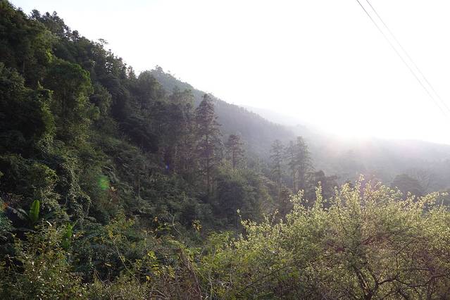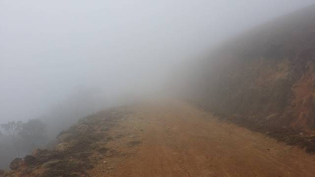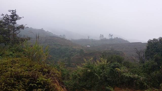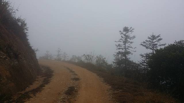 包车前往岗坪,40分钟车程,一路往山上驶去,天气状况变差,大雾笼罩山区。