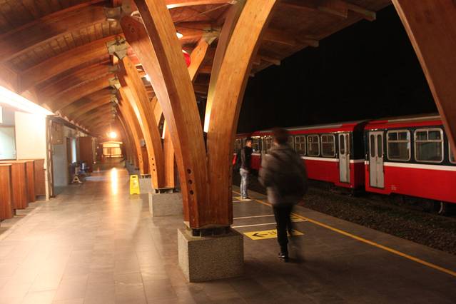 賞日出,請坐車到祝山車站。觀日樓。